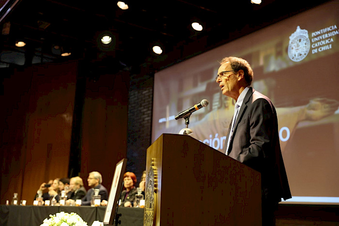 Al inicio de sus palabras, De la Llera recordó sentidamente la visita del Papa Francisco a la universidad, en enero de 2018. “Venía a recordarnos que una universidad como la nuestra no existe para sí misma, sino para ofrecer un servicio al país. Con convicción y humildad, habló de dos tareas ineludibles: contribuir a la convivencia nacional y avanzar como comunidad. En cierta medida, fue premonitorio para lo que vendría un tiempo después”, señaló.