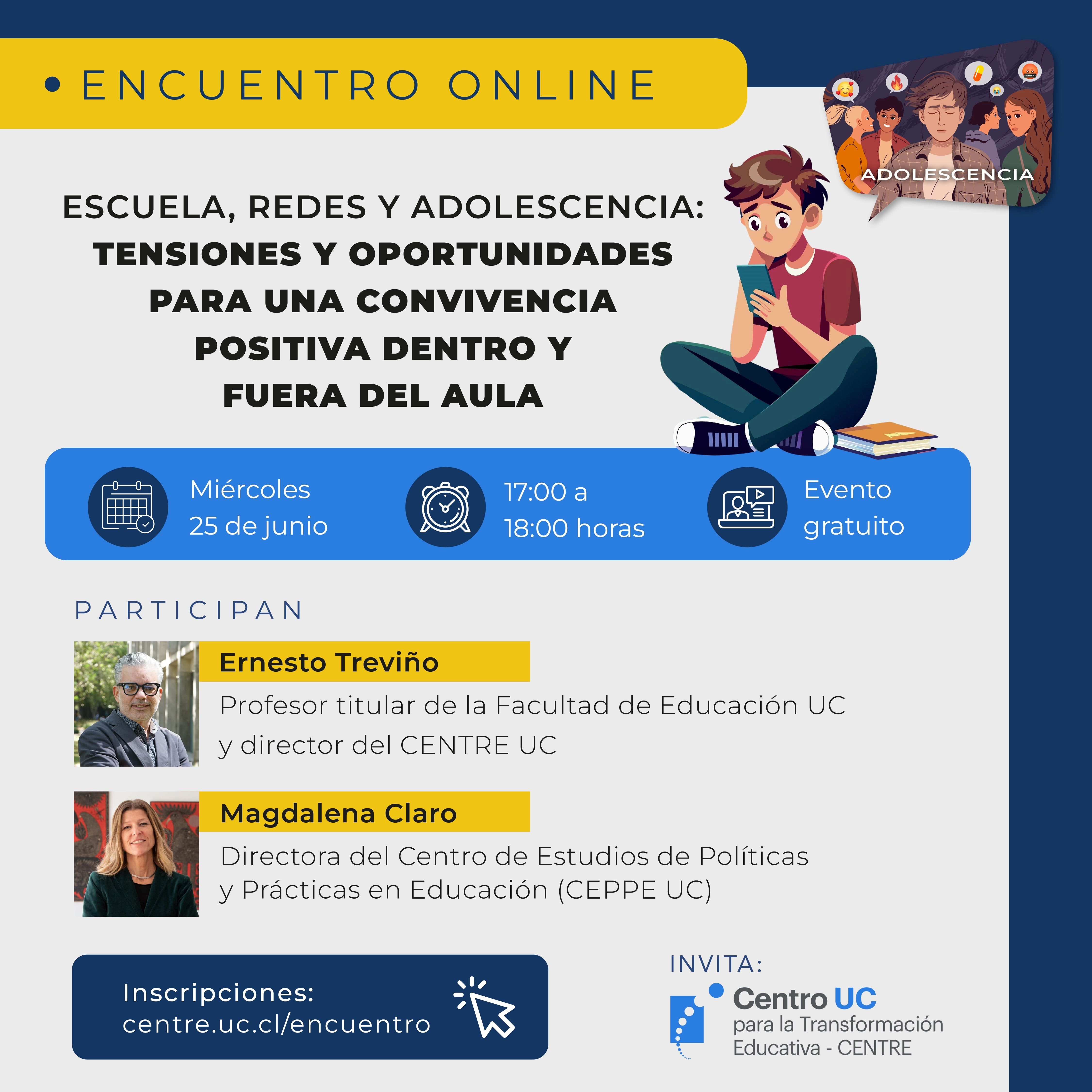 Inscríbete en el encuentro online: "Escuela, redes y adolescencia: tensiones y oportunidades para una convivencia positiva dentro y fuera del aula"