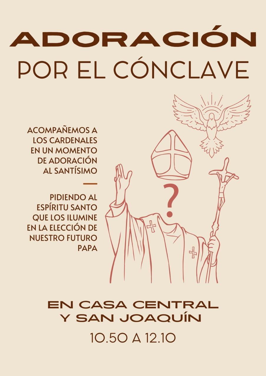 Te invitamos a una adoración al Santísimo en las capillas del campus Casa Central y San Joaquín. El objetivo es acompañar en oración a los cardenales que se encuentran en el Cónclave, invocando al Espíritu Santo para los ilumine en la elección de nuestro nuevo Papa.