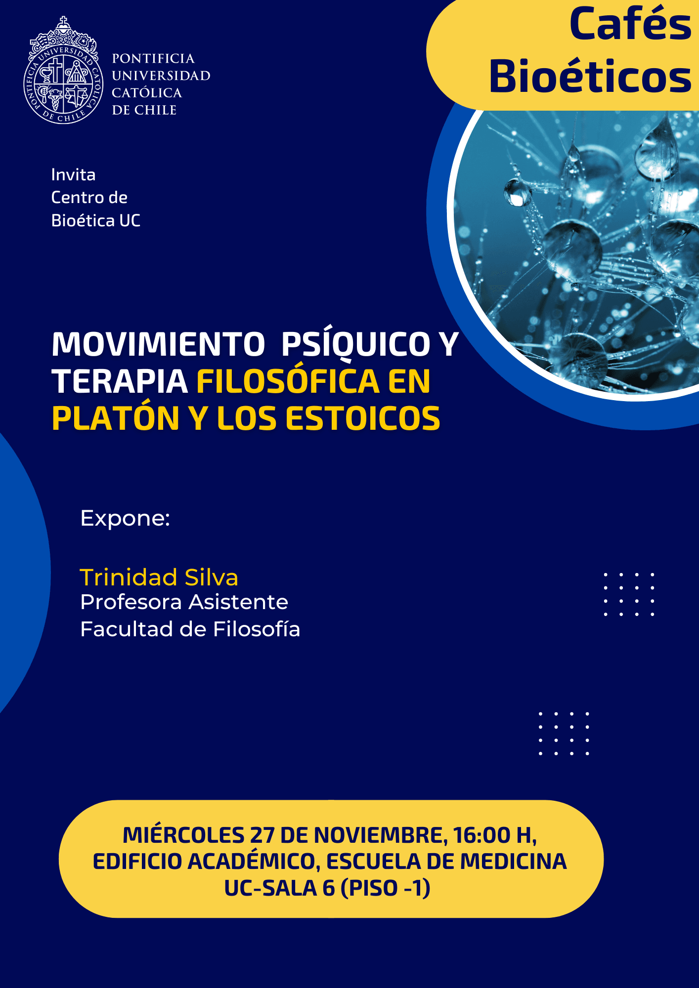Los y las invitamos a nuestros Cafés Bioéticos el día miércoles 27 de noviembre a las 16:00 h en el Edificio Académico de la Escuela de Medicina UC.