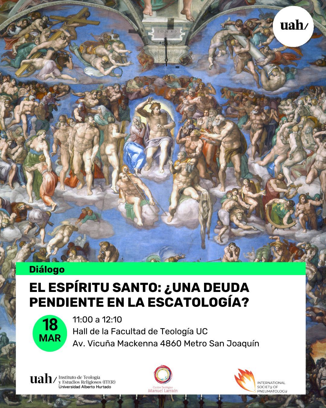 El Centro Teológico Manuel Larraín, el Instituto de Teología y Estudios Religiosos de la Universidad Alberto Hurtado y la Sociedad Internacional de Pneumatología invitan al Diálogo “El Espíritu Santo: ¿una deuda pendiente en la escatología?”