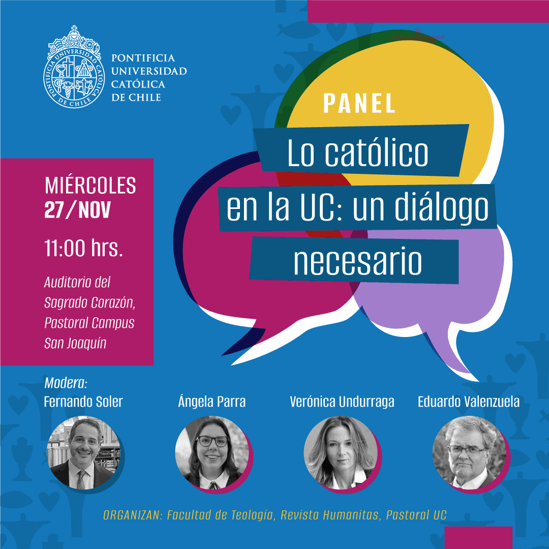 La Pontificia Universidad Católica de Chile te invita a participar en el panel "Lo católico en la UC: un diálogo necesario", una oportunidad única para reflexionar sobre el rol y relevancia de lo católico en nuestra comunidad universitaria.