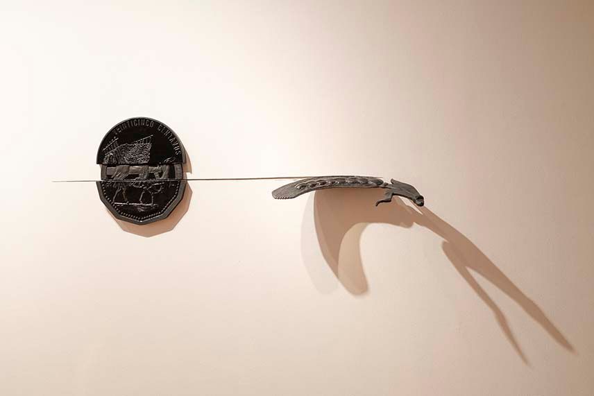 “El conjunto de piezas de esta exposición se basa en una colección personal de monedas latinoamericanas, escogidas por contener en sus íconos estereotipos de lo autóctono. La exposición es parte de una reflexión sobre la estetización de la vida silvestre y rural, producto de una mirada colonial que la ha reducido a un cliché exótico. Una fosilización de lo vital que provoca un efecto fantasmagórico que se cuela en nuestra forma de relacionarnos mediante las transacciones domésticas. A este respecto Guy Debord señala: “El espectáculo no es un conjunto de imágenes sino una relación social entre las personas mediatizada por las imágenes” y que, en el caso particular de estas monedas, se infiltra a través de su imaginario miniaturizado en el inconsciente social”, explica Claudio Correa.
