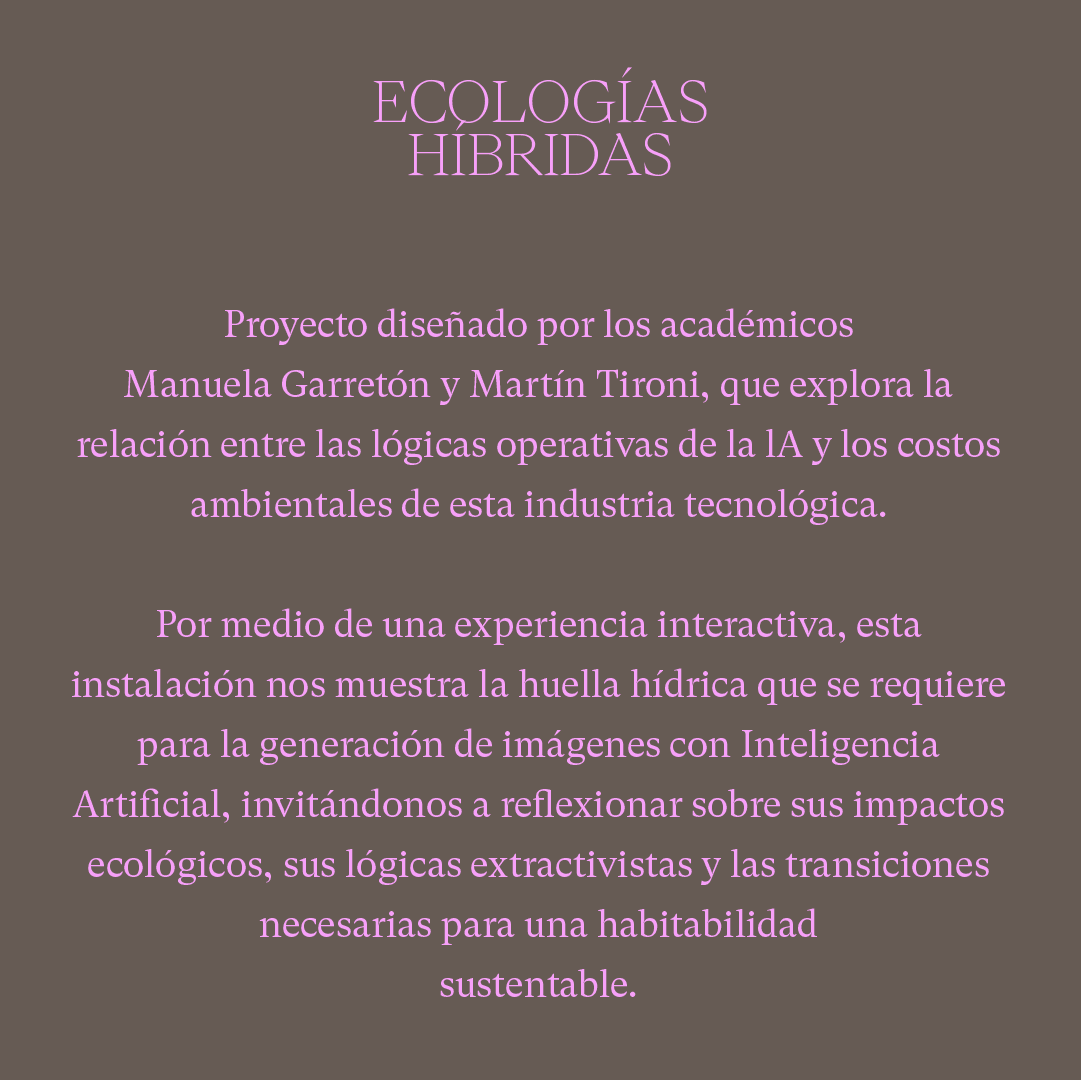 La obra es una invitación a superar la dicotomía entre naturaleza y tecnología, evidenciando cómo la IA habita y crea una ecología híbrida, constituida por relaciones de interdependencia entre agencias humanas y no-humanas.