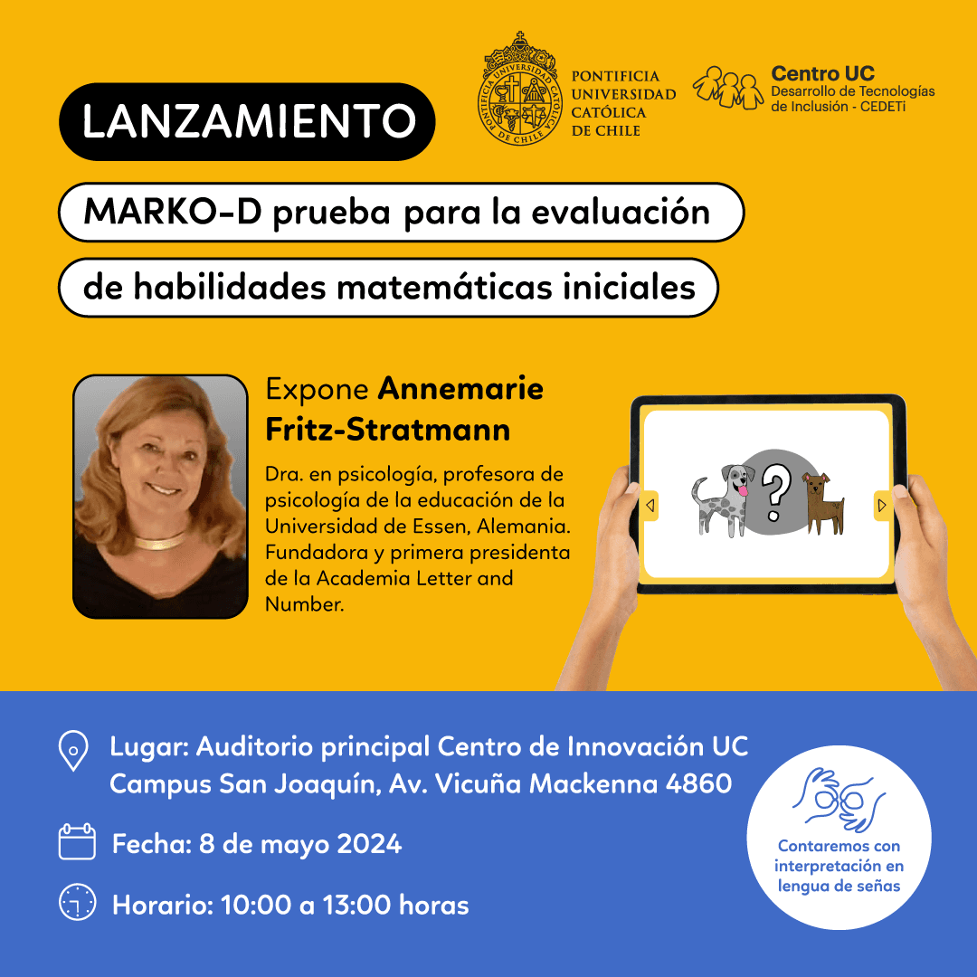 El Centro de Desarrollo de Tecnologías de la Inclusión, CEDETi UC, invita a la comunidad al lanzamiento de la prueba MARKO-D en Chile