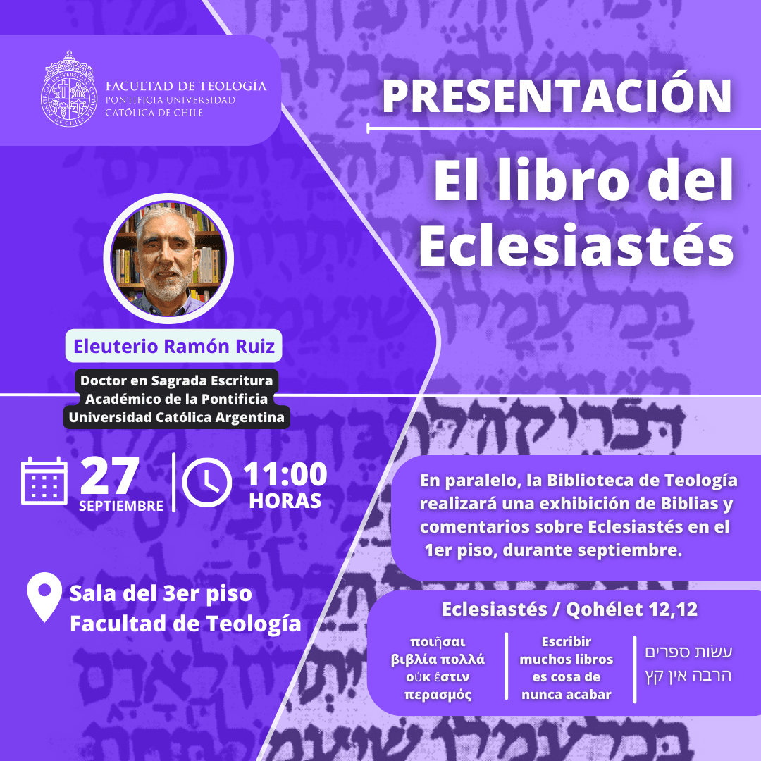 En paralelo, la Biblioteca de Teología realizará una exhibición de Biblias y comentarios sobre Eclesiastés en el 1er piso, durante septiembre.