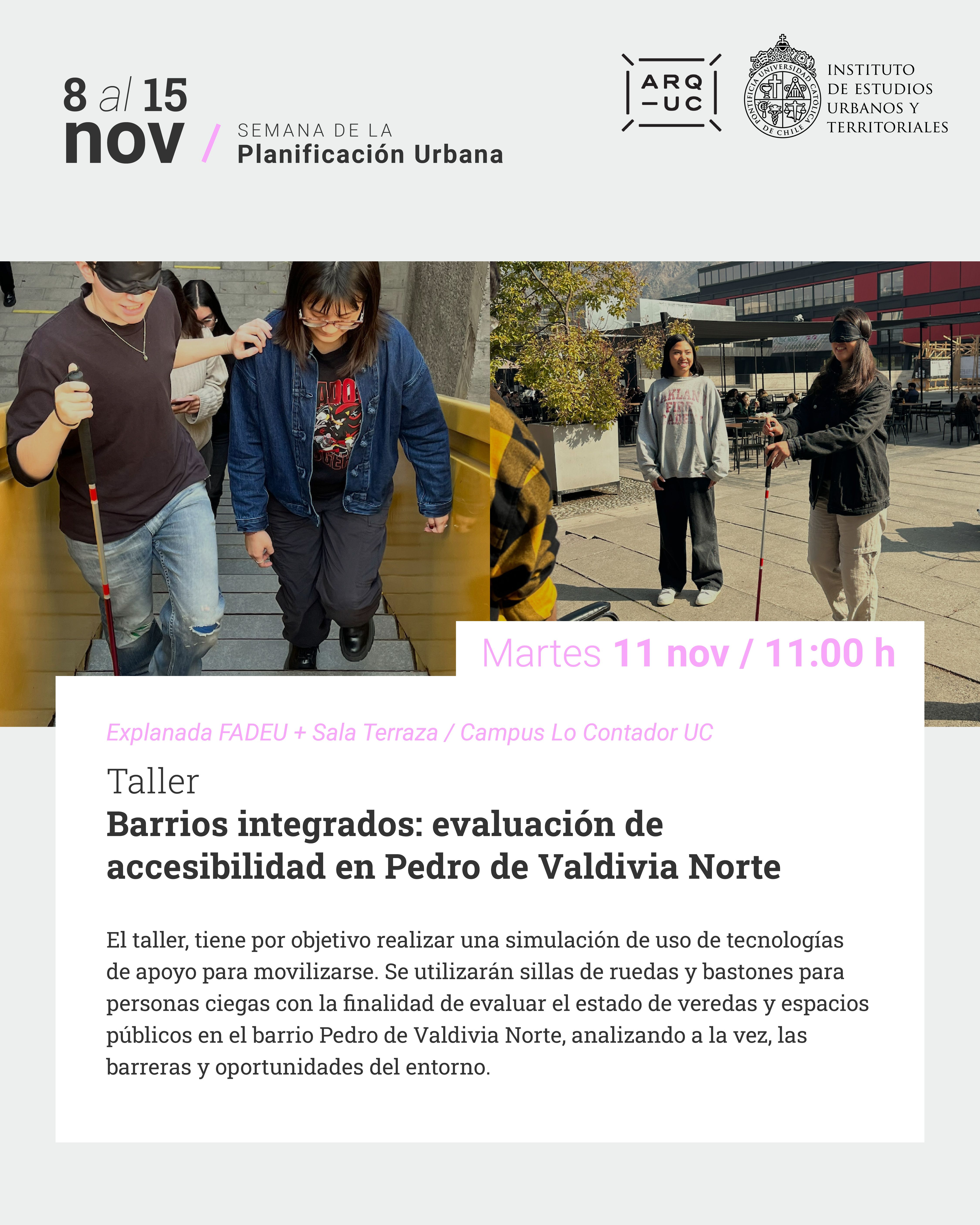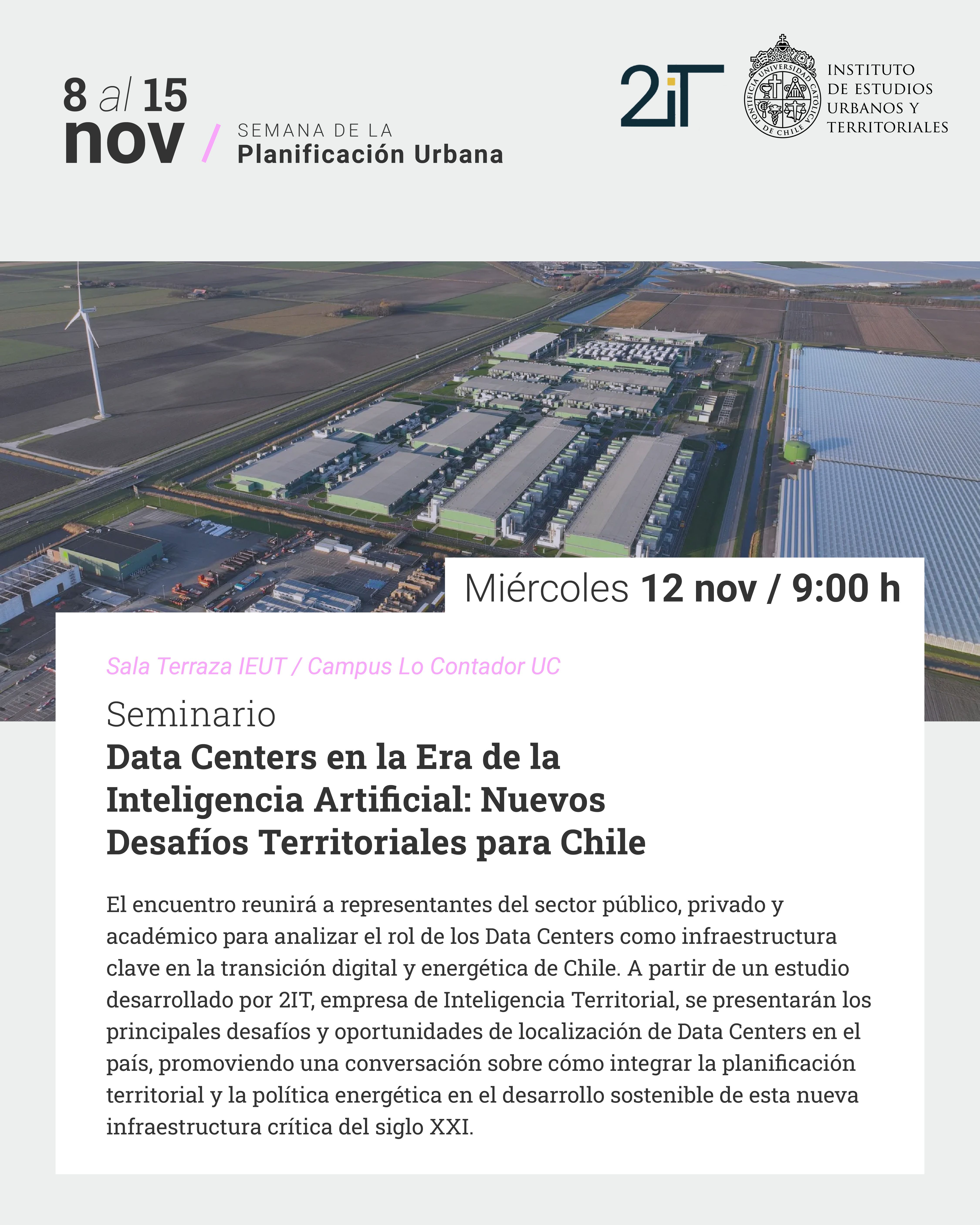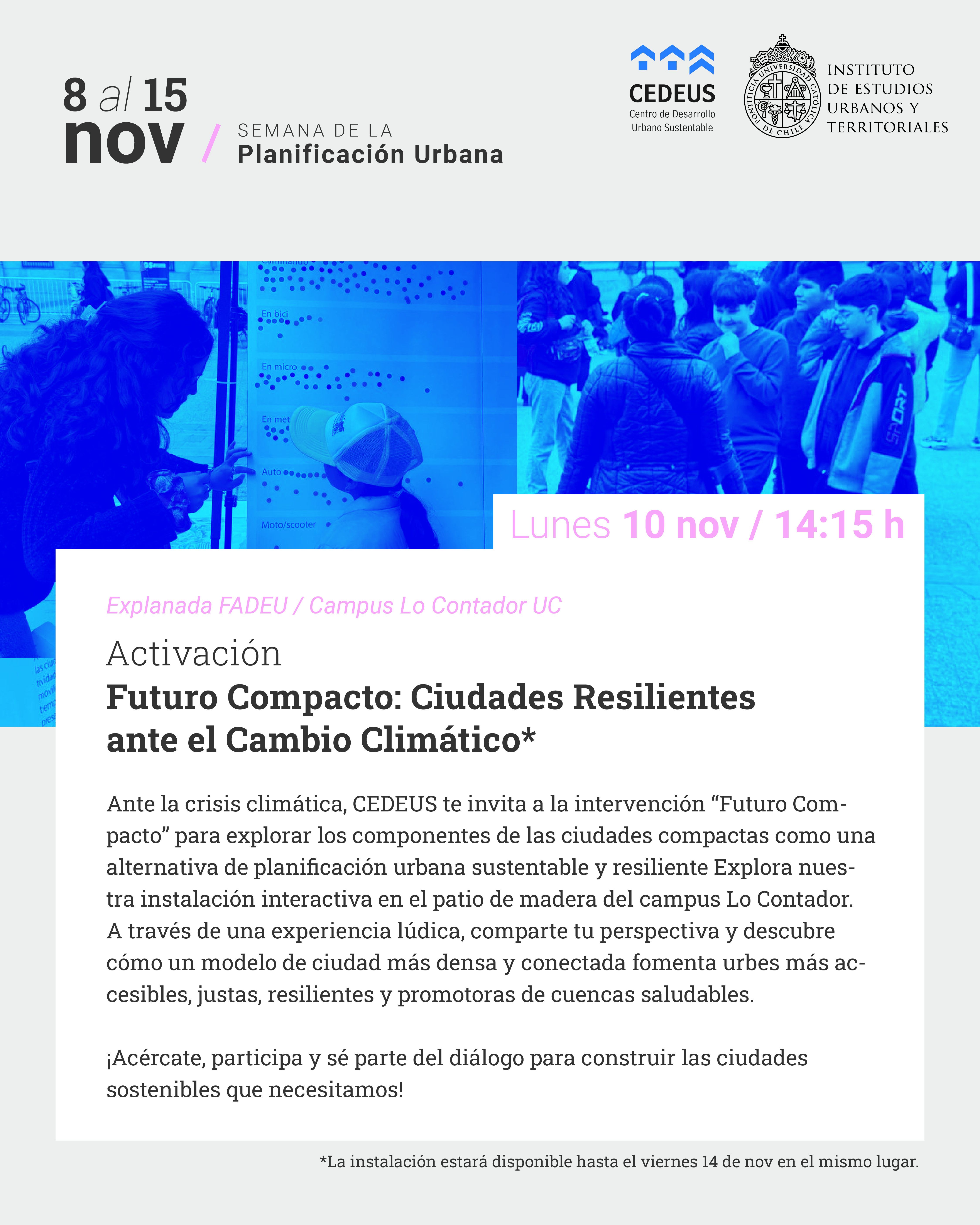Entre el 8 y el 15 de noviembre, El Instituto de Estudios Urbanos y Territoriales junto a la Facultad de Arquitectura, Diseño y Estudios Urbanos UC, celebran la Semana de la Planificación Urbana 2025, en el marco del Día Mundial del Urbanismo. Este espacio convoca a toda la comunidad académica, profesional e institucional para reflexionar sobre el presente y futuro de nuestras ciudades y territorios.