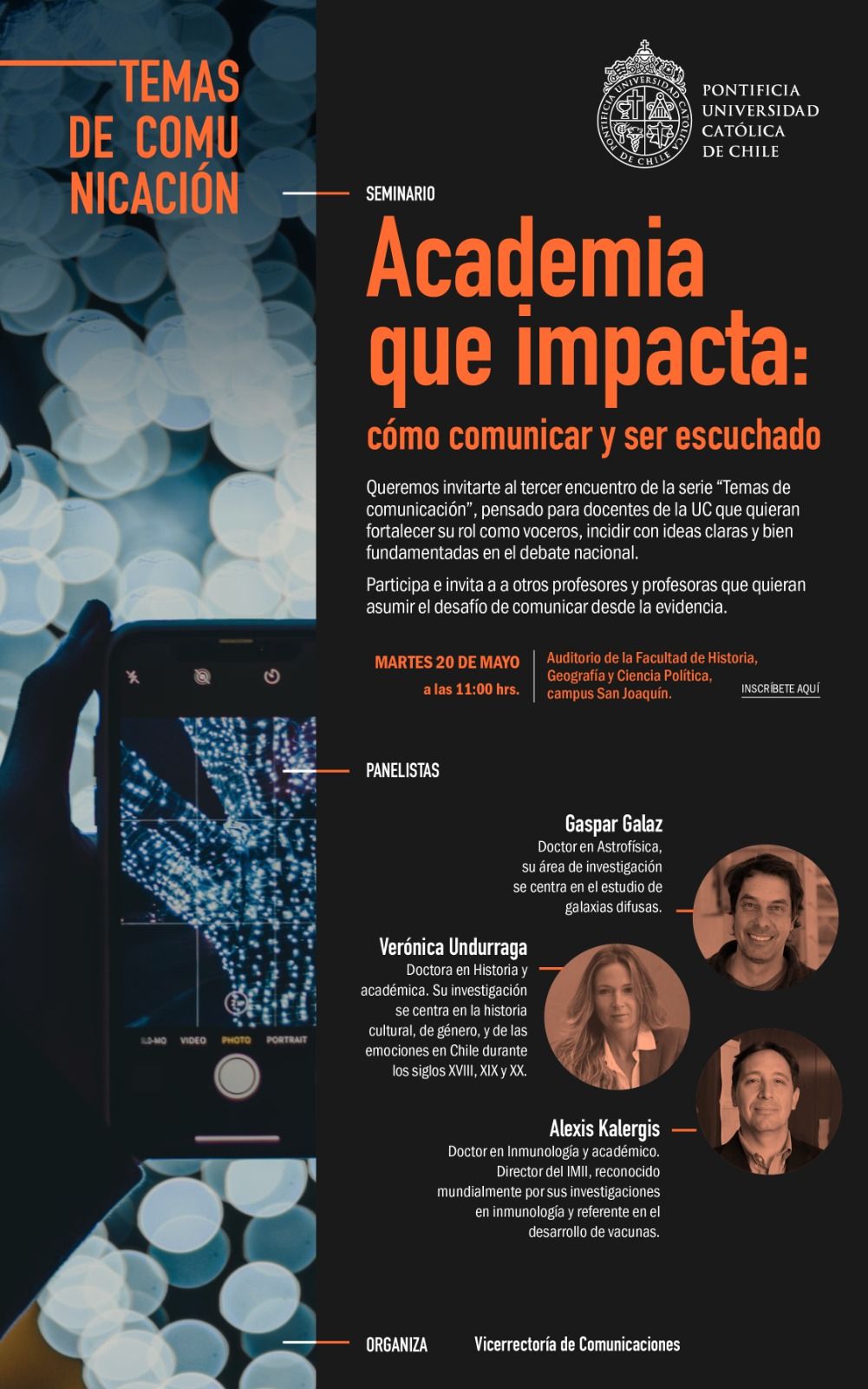 Te invitamos al tercer encuentro de la serie "Temas de comunicación", pensado para docentes de la UC que quieran fortalecer su rol como voceros, incidir con ideas claras y bien fundamentadas en el debate nacional.