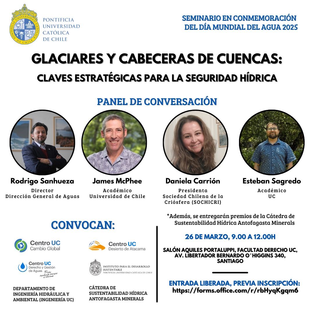 En el marco del Día Mundial del Agua 2025, te invitamos a participar del seminario "Glaciares y cabeceras de cuencas: claves estratégicas para la seguridad hídrica", que se realizará el miércoles 26 de marzo desde las 9:00 horas.