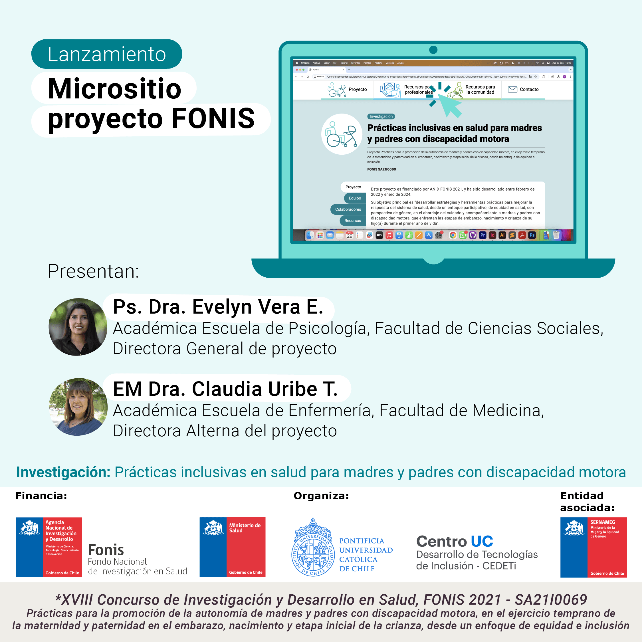 Te invitamos a ser parte del Seminario de cierre del proyecto “Prácticas para la promoción de la autonomía de madres y padres con discapacidad motora”, financiado a través del XVII Concurso Nacional de Proyectos de Investigación y Desarrollo del Fondo Nacional en Salud, FONIS SA21I0069, de ANID.