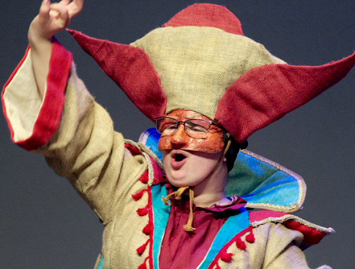 Máscaras y un vestuario basado en trajes de arpillera, además de una escenografía que se apoya con imágenes visuales digitales, son parte de la llamativa puesta en escena que impresiona por su colorido y estilo. La obra es dirigida por Víctor Romero e invita a los espectadores a reflexionar sobre el uso y el abuso de poder y a tomar conciencia del valor que tiene la transmisión de las tradiciones y la cultura.