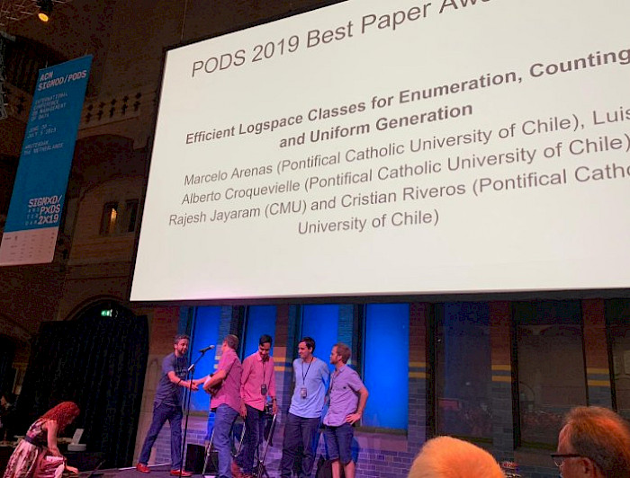 Un equipo de académicos y estudiantes del Departamento de Ciencia de la Computación de la Escuela de Ingeniería UC se adjudicaron el reconocimiento a mejor artículo de conferencia (Best Paper award) en la 38th ACM SIGMOD-SIGACT-SIGAI Symposium on Principles of Database Systems (PODS 2019), realizada en la ciudad de Amsterdam, Holanda.