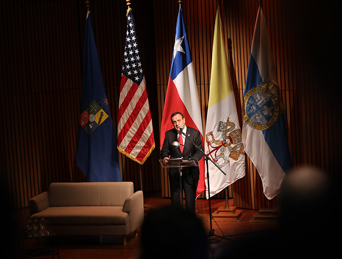 “Junto con celebrar los 200 años, este Encuentro Bicentenario es muy significativo porque junto con la U. de Chile hemos trabajado conjuntamente y hemos aglutinado a muchas universidades del país. Estados Unidos nos vuelve a unir en muchos aspectos, es el país con mayor cantidad de inversiones en nuestro país y uno de los destinos más importantes, no sólo en relación a las exportaciones, sino que también en temas culturales, intercambio educacional, ciencia, tecnología e innovación" - rector UC Ignacio Sánchez.