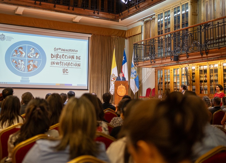 En una emotiva ceremonia, se festejaron los 10 años de la Dirección de Investigación -perteneciente a la Vicerrectoría de Investigación UC - evento en el que participó el rector Ignacio Sánchez; el vicerrector de Investigación, Pedro Bouchon; la directora de Investigación, María Elena Boisier y autoridades universitarias, investigadores, docentes, profesionales y público general.