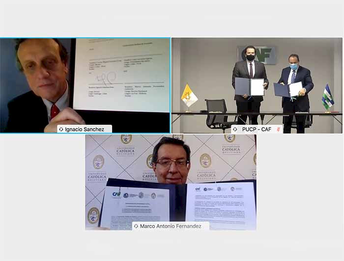 Con el propósito de promover investigaciones académicas y proyectos de desarrollo en las zonas fronterizas de Bolivia, Chile y Perú, que contribuyan al bienestar de las sociedades y su competitividad, se firmó un Memorando de Entendimiento entre CAF –banco de desarrollo de América Latina-, la Universidad Católica Boliviana San Pablo, la Pontificia Universidad Católica de Chile y la Pontificia Universidad Católica del Perú.