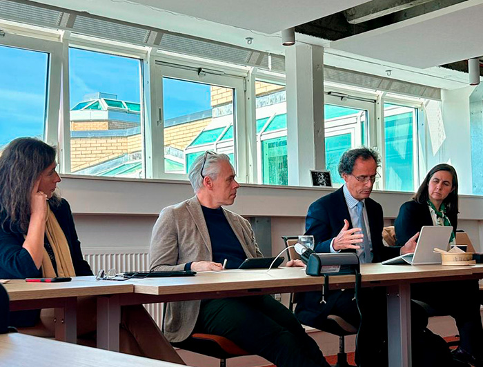 A continuación, la delegación visitó el Edinburgh Futures Institute, uno de los centros de investigación e innovación más avanzados de la Universidad de Edimburgo, orientado a abordar los grandes desafíos del siglo XXI desde una perspectiva interdisciplinaria. Posteriormente, el grupo se trasladó al King’s Buildings Campus, donde sostuvo reuniones con el equipo de internacionalización y el College of Science and Engineering, recorriendo los Fire Safety Labs. En esa misma jornada, la delegación se reunió con el Joint PhD y Research Office, en una conversación conducida por Rupert Lezemore, de Ciencias Sociales y Humanidades, y Tom Bruce, de Ciencias e Ingeniería, donde se exploraron modelos de formación doctoral conjunta y colaboración en investigación avanzada.