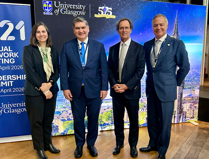 Edimburgo fue el punto de partida de una semana que continuó en Glasgow. El rector De la Llera y la delegación de la UC participaron en el encuentro de Universitas 21 (U21). El momento más significativo fue la participación del rector en el U21 Presidents’ Peer Round Table, un espacio exclusivo y cerrado de intercambio entre los líderes de las universidades de la red. La máxima autoridad de la UC fue uno de los tres rectores invitados a abrir la discusión sobre cómo deben liderar las universidades en tiempos de volatilidad y reconfiguración del orden global.