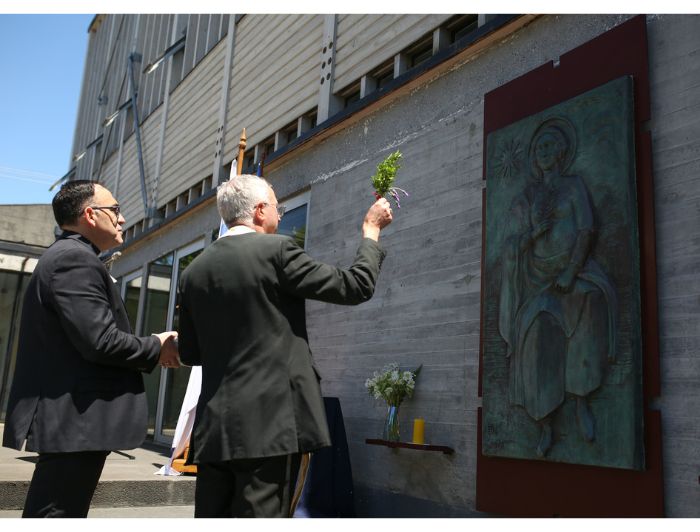 La ceremonia contó con la participación del rector de la UC, Ignacio Sánchez; el director del Campus Villarrica, Gonzalo Valdivieso; Monseñor Francisco Javier Stegmeier, el obispo de Villarrica; los artistas Francesco y Paolo Di Girolamo; invitados especiales; académicos, académicas, estudiantes y funcionarios de la sede.