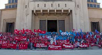 “Los estudiantes son verdaderos embajadores de la universidad, creo que este es un testimonio realmente importante. Desde San Felipe hasta Constitución están participando, por lo tanto, me parece que es un testimonio real de la presencia de la universidad en la comunidad”, expresó el rector de la UC, Ignacio Sánchez en su visita a la población La Bandera, comuna de San Ramón. En esta última se desarrolla el proyecto de inserción social de Pastoral llamado "Banderas", donde un grupo de estudiantes se va a vivir un semestre a una casa del sector para ponerse al servicio de la parroquia y su comunidad (ver foto más abajo).