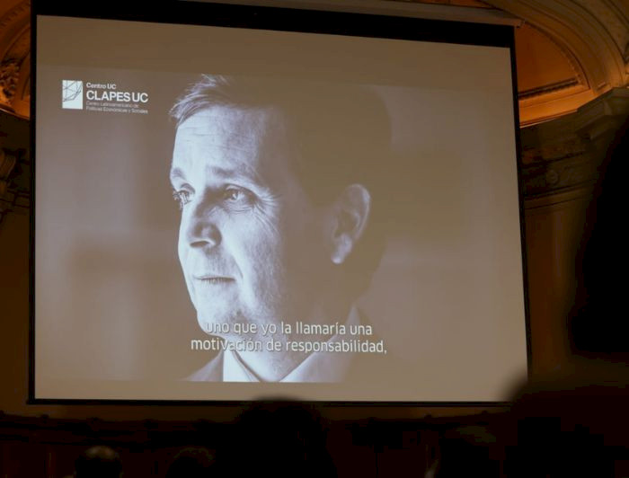 “Trabajamos codo a codo en la creación de este Centro y puedo decir con absoluta confianza que, sin Alfonso, CLAPES UC no existiría”, señaló Larraín, "por eso, y en su memoria, “no solo hacemos este seminario, sino también hemos renombrado el premio anual CLAPES UC por Premio CLAPES UC – Alfonso Swett, que este año lo recibió muy merecidamente nuestra presidenta del Banco Central, Rosanna Costa, también egresada de nuestra universidad".