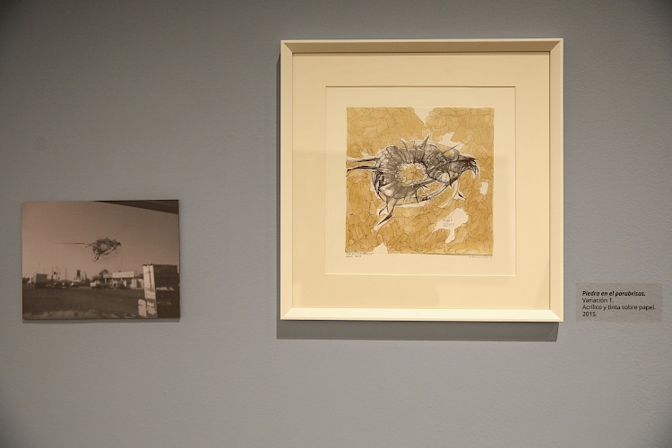 Algunos habrían visto solo una grieta. Otros solo se habrían quedado con el susto del momento. Pero cuando Claudio di Girolamo recibió el rebote de una piedra en el parabrisas de su auto, lo que él vio fue algo distinto: su siguiente obra de arte. Allí, este director, dramaturgo, pintor, y escenógrafo de 94 años dio rienda suelta a uno de sus principales motores artísticos, el dibujo, y con ello retrató lo que estaba frente a él: un vidrio roto, cuya fragilidad fue desdibujando hasta convertir esa grieta en algo más parecido a la fantasía de un ave o un bicho. Esa pieza, Variaciones, forma parte hoy de su más reciente exposición, "Fragmentario. Claudio di Girolamo: trayectos de obra", que se exhibe de forma gratuita en el Centro de Extensión UC Alameda.
