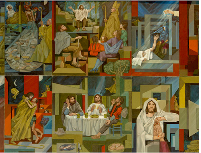 photo_camera Detalle del mural pintado por Claudio Di Girolamo. Facultad de Teología