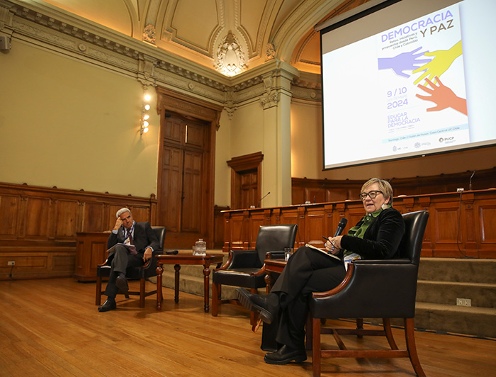 Tres universidades católicas se unieron para abordar los serios retos y amenazas que enfrenta la democracia en la región. El Simposio Permanente Educar para la Democracia -conformada por la UC, la Pontificia Universidad Católica del Perú y la Pontificia Universidad Javeriana de Colombia- realizó esta semana un encuentro en Santiago, que reunió a expertos internacionales, rectores, académicos y estudiantes.