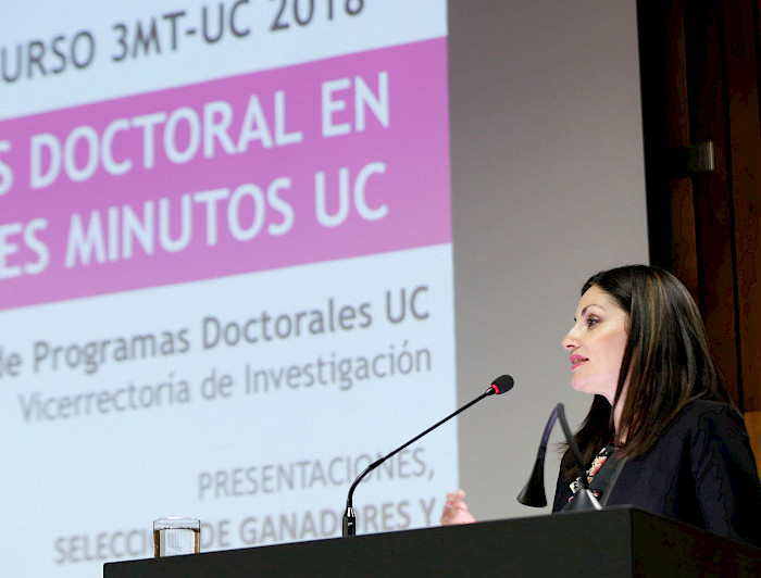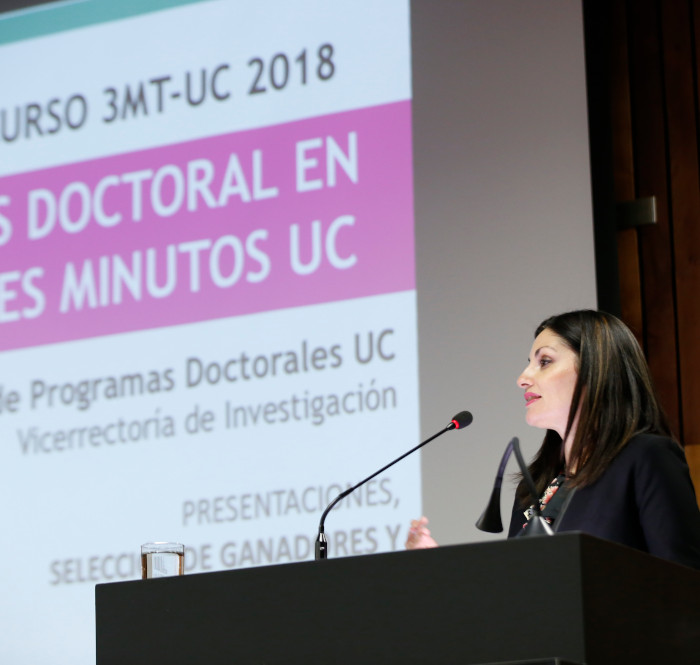 Este jueves 8 de agosto se realizará la séptima entrega de 3MT® UC 2019, evento organizado por la Dirección de Doctorado de la UC, iniciativa en la que se desafía a los estudiantes de doctorado a realizar una presentación oral, en solo tres minutos y en inglés.