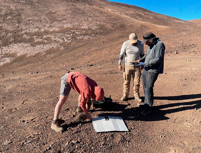 El académico participa de un proyecto internacional liderado por Simon Matthias May y Lucas Ageby, ambos profesores del Instituto de Geografía de la Universidad de Colonia, Alemania, que busca entender cómo se forman estas franjas, en un entorno donde los procesos geomorfológicos avanzan con una lentitud extrema.