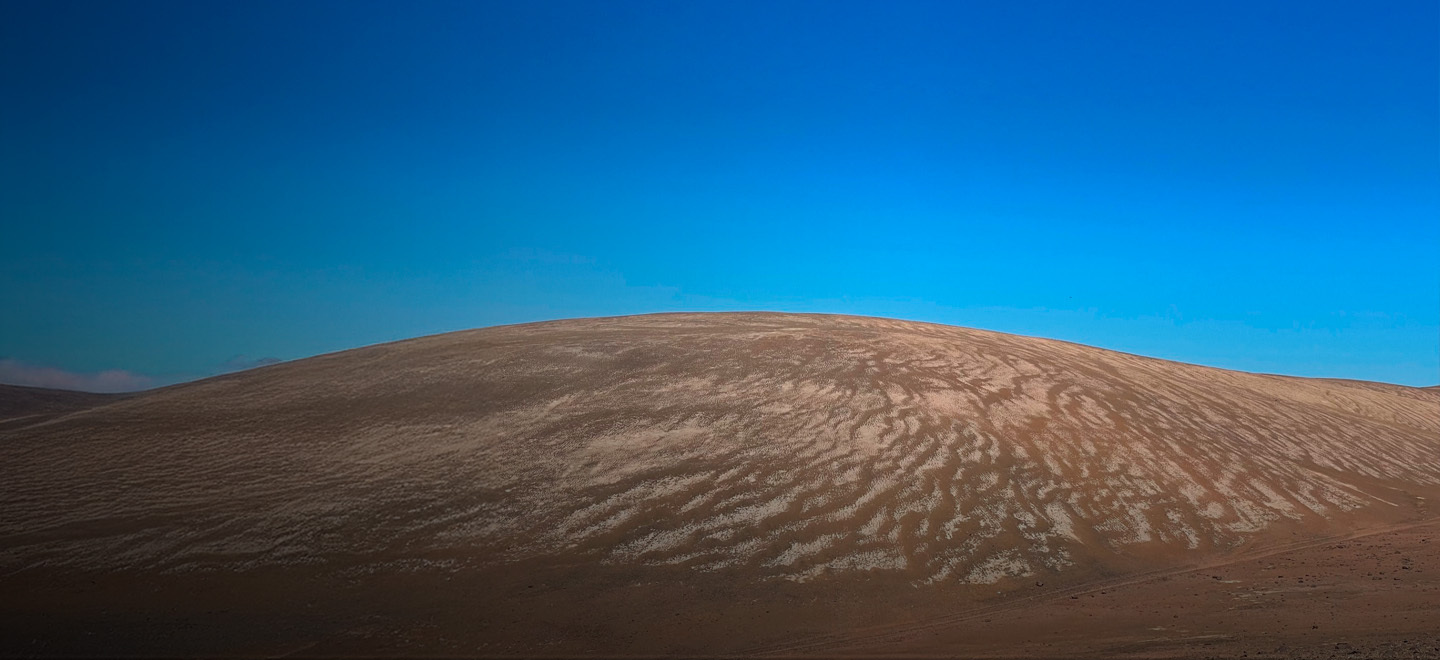 photo_camera Una vista panorámica de formaciones de "zebra stripes" en las áridas laderas del desierto de Atacama. Estos patrones geológicos distintivos muestran bandas ordenadas de piedras que se asemejan a rayas de cebra a medida que descienden oblicuamente por los cerros. (Crédito fotográfico: Juan Luis García)