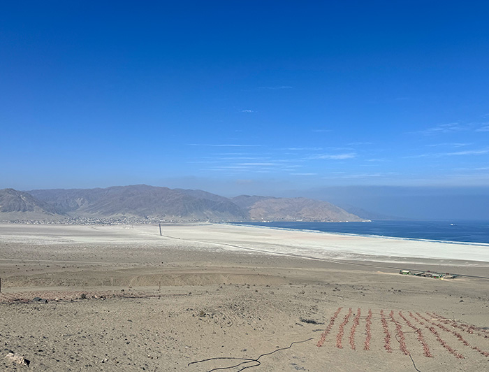 A unos pocos kilómetros al norte de Chañaral se encuentra Falda Verde, en pleno desierto de Atacama, camino al Parque Nacional de Pan de Azúcar. No hay nada. Solo cerros, mar, una tierra pedregosa y una arena blanquizca que en realidad son relaves mineros. Así que parece casi irreal pensar que, precisamente en este lugar, se pueda cultivar algo.