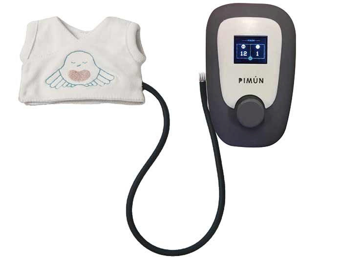 Esta tecnología ha sido creada en forma de camiseta por la diseñadora integral de la UC, María Jesús Álvarez, y la doctora en neonatología UC, Paulina Toso. Cuentan que actualmente se previene la apnea del sueño con técnicas invasivas como, por ejemplo, el ventilador mecánico. En cambio, Pimún se contacta suavemente con el dorso del bebé, enseñándole por medio de la estimulación kinésica a respirar correctamente, sin dañar su piel.