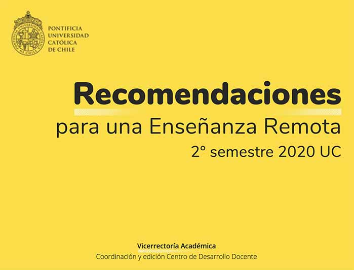 Desde un enfoque directamente centrado en el proceso de enseñanza-aprendizaje, el documento incluye capítulos dedicados a las evaluaciones, el trabajo con clases sincrónicas y asincrónicas o la elaboración de cápsulas para subir a la plataforma Canvas, entre otros contenidos. Desde un enfoque más humano, aborda recomendaciones tendientes al cuidado de los y las estudiantes, así como al autocuidado de quienes realizan la docencia. En esa línea se considera de manera simple, pero detallada, la integridad académica, la inclusión y la equidad de género en contexto remoto, tomando en consideración a toda la Comunidad UC.
