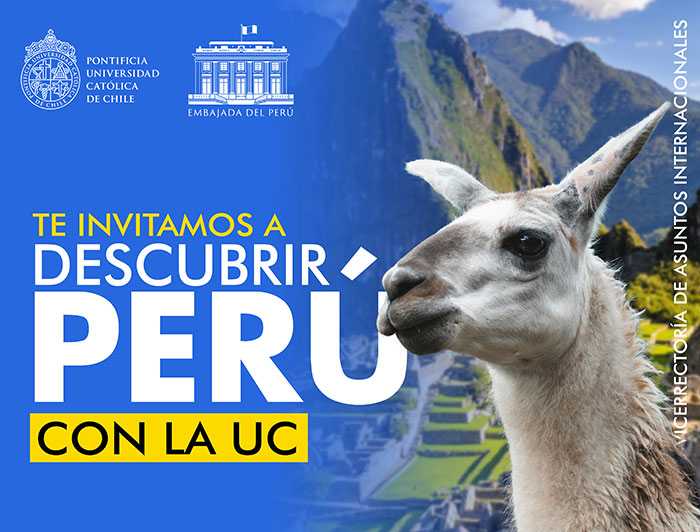 Descubrir Perú con la UC, entre el jueves 8 y el miércoels 14 de agosto, traerá charlas magistrales y una feria cultural con presentaciones de música, danza y arte, en colaboración con la Embajada de Perú en Chile. Las actividades se realizarán en los campus Casa Central, San Joaquín y Oriente.