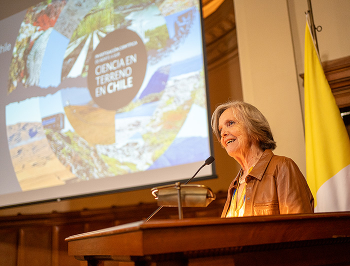 Su tremenda labor es lo que se recoge en “Ciencia en terreno en Chile, investigación científica de norte a sur”, libro de la Vicerrectoría de Investigación lanzado en una ceremonia el 17 de marzo pasado en el Salón de Honor de la Casa Central de la UC y que contó con la exposición de la Premio Nacional de Geografía 2019 y exdirectora del Centro UC Desierto de Atacama Pilar Cereceda. Se trata de la segunda versión de la publicación editada en 2018 y que da cuenta del crecimiento de la red y de su impacto, tanto en número de estaciones como de su labor, a través de bellas fotografías -tomadas por profesionales e investigadores de la UC y de la Red- y testimonios de profesores, estudiantes y personas de las comunidades.