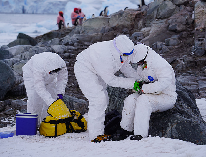 Un equipo internacional liderado por la profesora UC Juliana Vianna y Fabiola León, ambas investigadoras de los institutos Milenio CRG y BASE, hallaron por primera vez casos sospechosos de influenza aviar altamente patógena (HPAIV) subtipo H5, tras un muestreo de aves marinas desde la Península Antártica hasta el Mar de Ross.