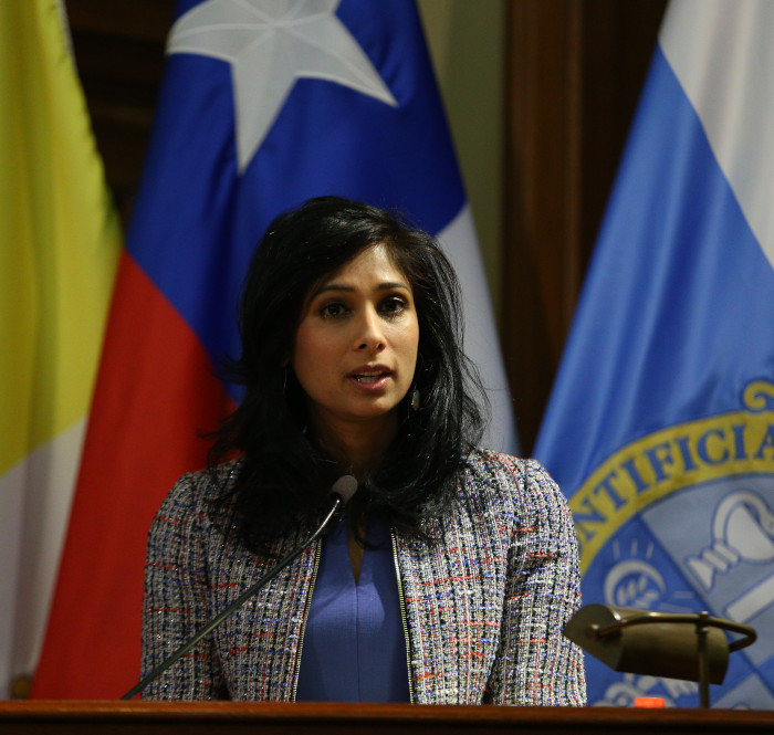 Eso es lo que abordó Gita Gopinath, consejera económica y directora del Departamento de Estudios del Fondo Monetario Internacional (FMI), quien visitó la universidad para reunirse con académicos y autoridades, y exponer la actualización de los resultados del World Economic Outlook, un reporte elaborado por el FMI.