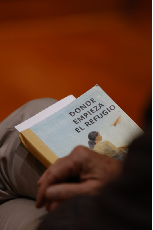 Asimismo, destacó el ejercicio que realizaron los estudiantes de compartir cartas que dieron origen al libro “Donde empieza el refugio”, presentado durante la ceremonia como continuación de la iniciativa Puentes de Papel, impulsada por ACNUR, el Departamento de Acción Social de la Subsecretaría del Interior y el Servicio Nacional de Migraciones, que es una recopilación de relatos escritos por los propios estudiantes, quienes narran en primera persona sus experiencias de llegada e integración en Chile.