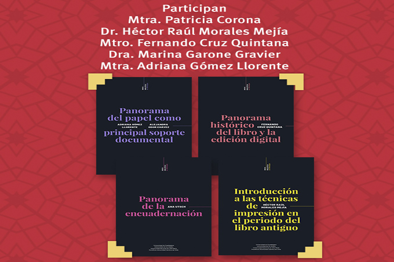 En este último ámbito se encuentran actividades como la presentación editorial de los seis títulos de la colección Breve Biblioteca de Bibliología: “Panorama sobre el papel como principal soporte documental” de Adriana Gómez Llorente y Alejandra Odor Chávez, “Introducción a las técnicas de impresión en el periodo del libro antiguo” de Héctor Raúl Morales Mejía, “Panorama de la encuadernación en Occidente” de Ana Utsch, “Introducción a la cultura visual y material del libro antiguo” de Marina Garone Gravier, “Panorama de la historia del libro y la bibliografía” de Andre Vieira de Freitas Araujo, Diná Marques Pereira Araújo y Giulia Crippa, y “Panorama histórico del libro y la edición digital” de Fernando Cruz Quintana.