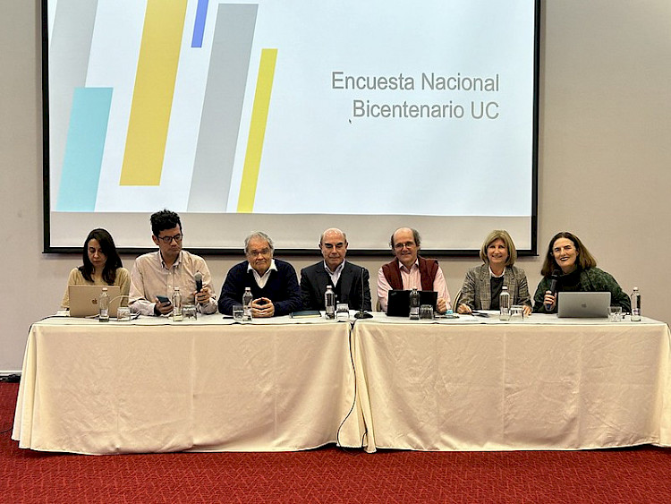 Por la tarde, se dio inicio al primer panel titulado “¿Qué nos ha enseñado en 18 años la Encuesta Bicentenario?” Moderado por la decana de la Facultad de Comunicaciones, Paulina Gómez y la profesora Francisca Alessandri, este conversatorio contó con la participación de Ignacio Irarrázaval, Roberto Méndez, Eduardo Valenzuela, Lyuba Yez y Héctor Carvacho. Los panelistas discutieron cómo la encuesta ha sido un instrumento clave para entender la evolución de la identidad nacional, los cambios en la sociedad chilena, y los conflictos emergentes, como el relacionado con la migración o la baja afiliación religiosa. Se destacó la metodología rigurosa y la importancia de contar con datos fiables para influir en políticas públicas y también para considerar en la docencia.