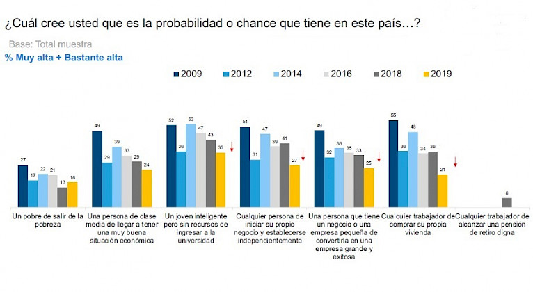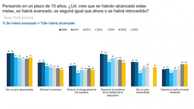 Como una frustración de las expectativas observada principalmente entre los estratos socioeconómicos medios y altos evaluó Ignacio Irarrázaval, director del Centro de Políticas Públicas de la UC, parte de los resultados que arrojó la última Encuesta Bicentenario. ¿A qué le temen los chilenos?, ¿qué instituciones generan mayor esperanza?
