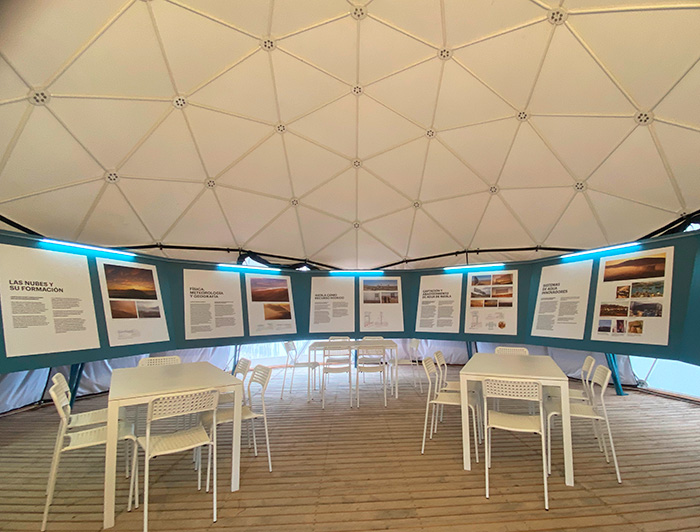 El objetivo de este espacio es que las personas, especialmente de las comunidades de Alto Hospicio e Iquique y otras localidades de la región de Tarapacá, puedan conocer parte de la investigación en torno al agua de niebla que investigadores de la UC desarrollan hace 25 años, así como ver y aprender in situ en qué consisten y cómo funcionan los atrapanieblas. Esto, a través de una exposición que se encuentra al interior de un amplio domo, que cuenta con mobiliario y equipamiento para realizar actividades educativas, y de un modelo de atrapanieblas a escala instalado en el Patio Demostrativo.