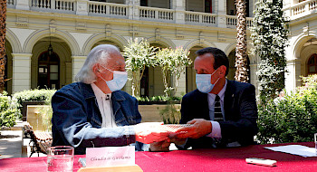 Junto a esto, en este tiempo también se recibió la obra de uno de los autores más vanguardistas de Chile, Vicente Huidobro. Donado por su familia, la universidad resguarda ahora más de cinco mil piezas en el Archivo Vicente Huidobro, con libros, manuscritos, revistas, boletines, correspondencia y fotografías, constituyendo así la colección más importante en el mundo del reconocido escritor, el primer poeta de vanguardia en lengua castellana y pionero en el uso de los caligramas. Como parte del compromiso de difusión de este importante legado cultural, la UC abrió en 2023 la nueva Sala Vicente Huidobro, con un enfoque interactivo. Diseñada por el decano de la Facultad de Arquitectura, Diseño y Estudios Urbanos, Mario Ubilla, este espacio en el Centro de Extensión UC Alameda exhibe actualmente la muestra “Huidobro: creacionismo y vanguardia” hasta el 31 de marzo, para luego dar pie a su primera inauguración en 2024. Enfocada en Huidobro y su vínculo con el arte africano, esta nueva exposición abrirá al público el martes 30 de abril. Más información en extensión.uc.cl
