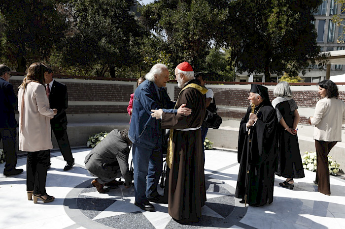 Durante la ceremonia de inauguración de la Plaza de la Paz, Claudio di Girolamo agradeció al equipo que trabajó en la creación de la plaza y también se refirió a su expectativa de que este lugar contribuya a la convivencia y a la paz: "Deseo profundamente que quienes habiten este pequeño espacio, aunque sea con una breve presencia, se sientan conmovidos por él, y que logre transmitirles algo de la fuerza y de la convicción necesarias para poder ser, durante toda su propia vida, constructores de la paz", dijo.