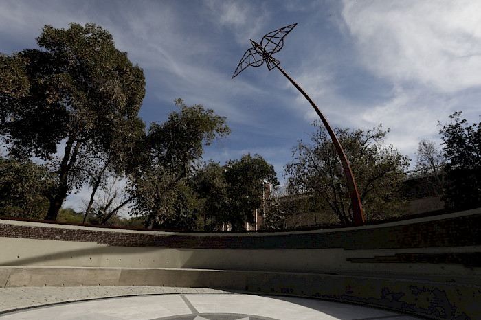 Además, la plaza cuenta con un lugar dedicado a los 31 docentes, profesionales y estudiantes ejecutados y detenidos desaparecidos de la casa de estudios durante la dictadura. Esta obra refleja también una veta del artista, donde volcó su creatividad en favor de los más vulnerables. En esta misma línea, fue quien diseñó el sagrario de madera para la Vicaría de la Solidaridad que ahora forma parte de la Capilla de Casa Central.