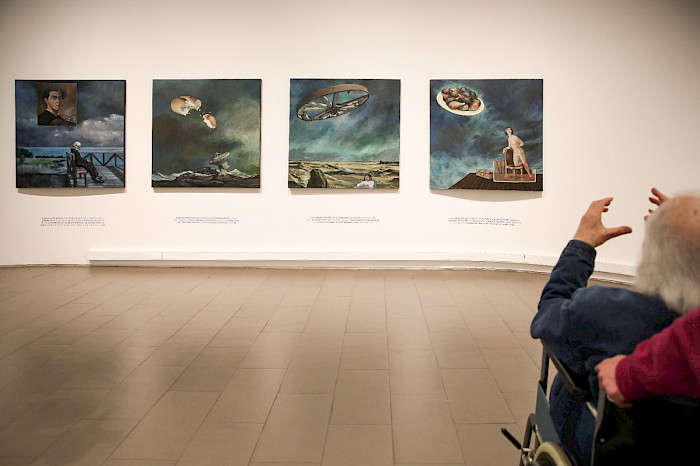 “Fue un artista súper multifacético. Tuvo toda el área por la que se le conoce más, que fue su participación en televisión en Ojo con el Arte, que fue súper importante en los años 80 y 90. Por eso está en el imaginario de todos, su personaje con su chaqueta de jeans y siendo una persona sumamente amable, culta y sensible. Por otro lado, tuvo un gran impacto en la formación del Teatro Ictus y dejó todo un legado en el montaje de obras como dramaturgo. También destaca su obra pictórica, que está muy relacionada con la de su padre, Giulio di Girolamo”, dijo Macarena Cortés, directora del Centro del Patrimonio Cultural UC.