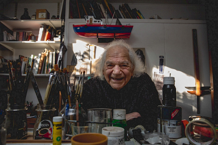 photo_camera Con una imaginación inagotable, en sus últimos días él confesaba esa presión que sienten los grandes artistas al ver el avance del tiempo físico: la preocupación por seguir creando, por alcanzar a terminar aquellos proyectos artísticos que envolvían su mente siempre activa, y una visión por el resguardo de esa larga trayectoria y legado. Foto: Dirección de Comunicaciones UC
