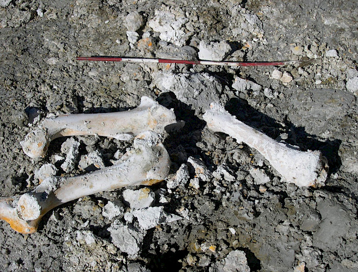photo_camera La historia de este descubrimiento comenzó en 2013, cuando los restos óseos de este animal fueron descubiertos accidentalmente durante las actividades de extracción de borato en el salar de Surire. Foto IEB.
