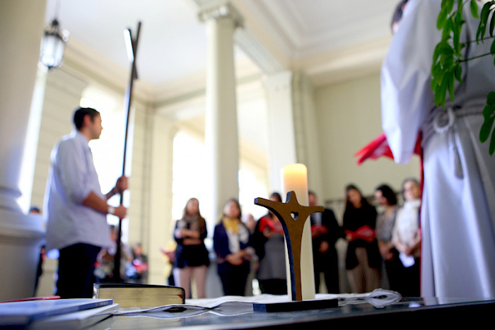 photo_camera Rocío Cortés, académica de la Facultad de Teología explica: “La Semana Santa comienza con el Domingo de Ramos, donde se recuerda la entrada triunfal de Jesús en Jerusalén junto a sus discípulos. Es por eso que nos encontramos en las iglesias y la misa tiene una connotación especial, celebrativa". Crédito fotográfico: Karina Fuenzalida