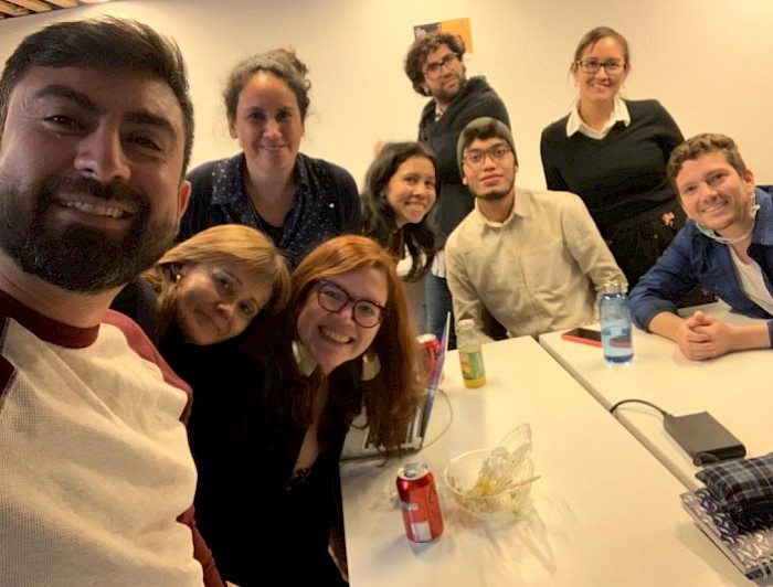 photo_camera Alexis Cruz y Vicente Schulz son los pioneros en participar de este proyecto entre el IMII y la Facultad de Comunicaciones y que permitirá conocer, de primera fuente, las investigaciones que lidera este organismo y así poder comunicarlas de mejor manera a la sociedad. Acá ambos comparten junto a sus compañeros de doctorado.